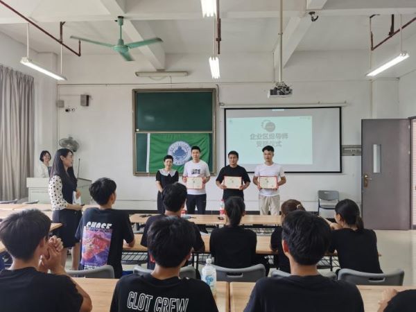 拜师仪式上,倪春丽上台致辞,并为来自百果园班企业区级督导经理三位现代学徒制班带教导师颁发了聘书。随后,师傅和徒弟开了隆重庄严的拜师礼。张佳辉主管的一句“行拜师礼”后,徒弟们向对应指导师傅行拜师礼,敬拜师茶。这一形式将传统拜师礼与现代学徒制相结合,传承工匠精神,深化现代学徒制校企合作岗位人才培养模式改革。