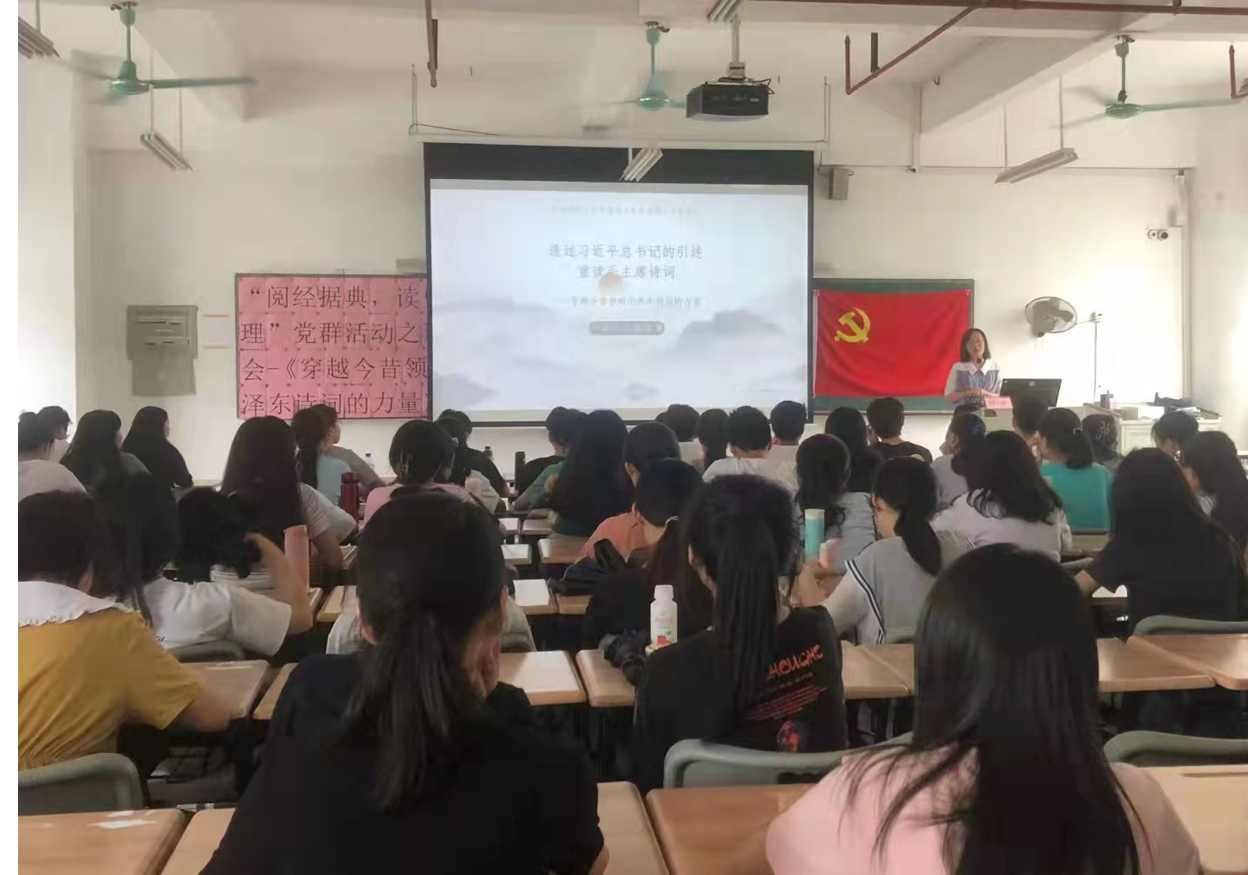 为了传承革命历史文化,赓续红色血脉,在青年学生中推进党史学习教育,加强青年学生对习近平总书记重要讲话精神的理解与领悟,工商管理学院党群服务中心于9月28日下午在明德楼2区504开展了“阅经据典,读史明理”读书会活动。本期读书会的主题是“透过习近平总书记的引述,再读毛主席诗词”,由工商管理教师党员“经典品读”工作室韩天瑶主讲。