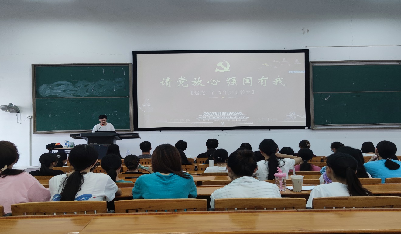宣讲过程中,张跃同志以高昂的精神状态和生动丰富的语言为同学们讲解党史,赢得同学们的一致好评。宣讲共分为四个章节开展,第一章节引用一段习近平总书记在庆祝中国共产党成立100周年大会上的讲话,带出党、国家和人民对新时代青年殷切期盼。第二章节用“为什么中国共产党能带领中国人民取得中国革命胜利?”的问题引出“中国共产党为什么行”的答案。第三章节从中国共产党党史中抽取出“新民主主义革命史”进行详述,深刻阐述党史中的革命精神力量。第四章节,张跃以自身亲身实践活动向同学们号召,新时代青年大学生要脚踏实地,从点滴小事做起,从自身实际做起,不负韶华,不负时代!