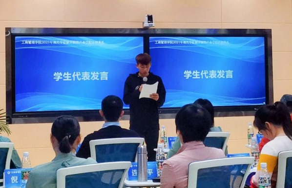 11月2日下午,工商管理学院2021年现代学徒制开学典礼暨新生入学党史学习教育在明德楼1-316举行。