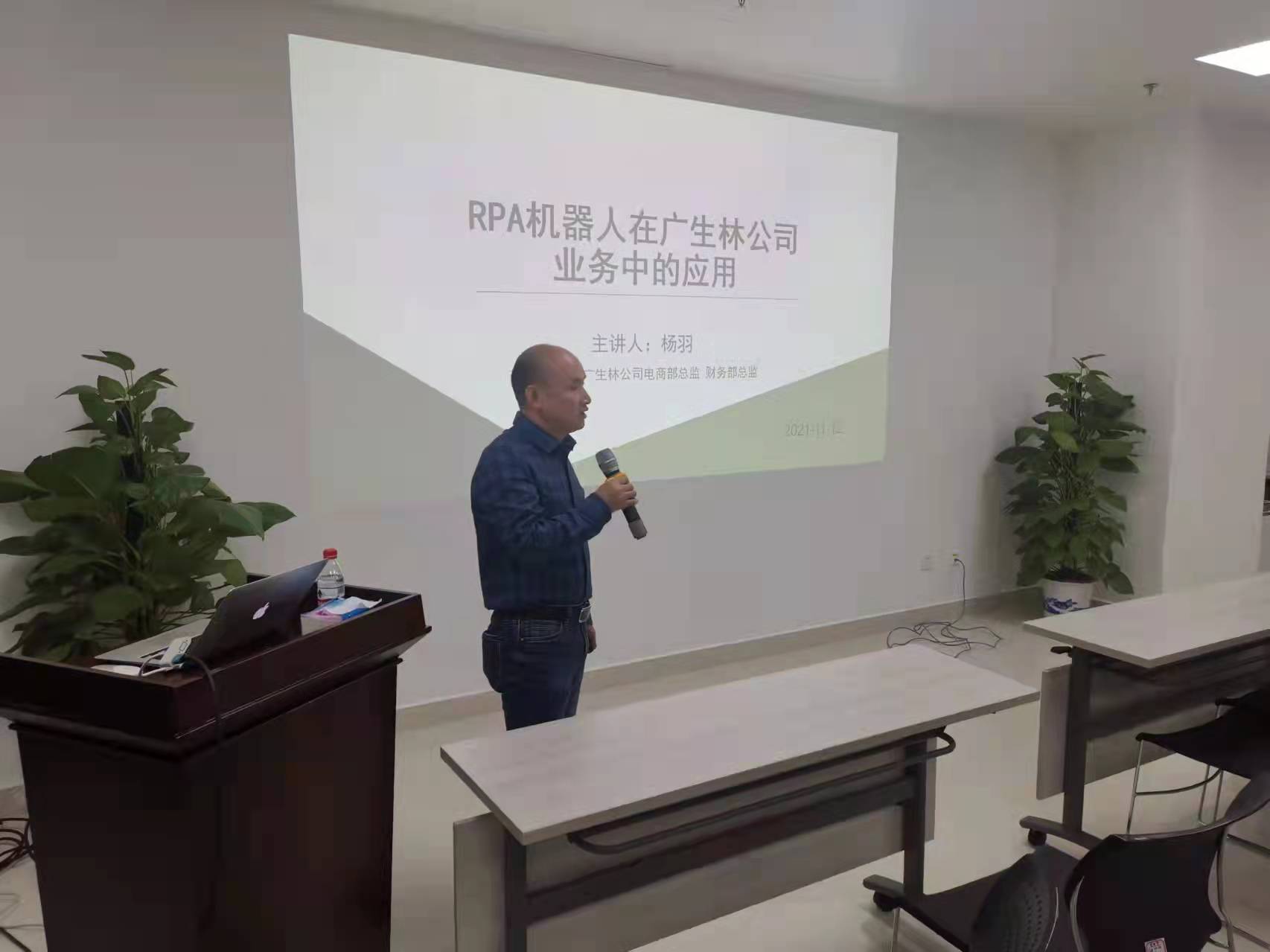 培训内容共分为两个部分,第一部分由杨羽介绍RPA机器人在广生林公司业务中的应用,杨羽以广生林公司为例,介绍在公司现状下RPA机器人在公司核单岗工作上的具体应用。