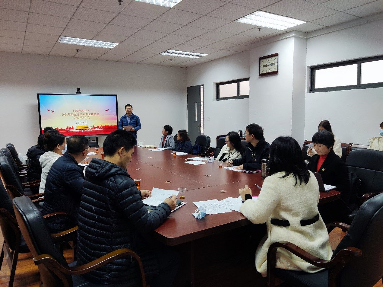 为全面贯彻习近平新时代中国特色社会主义思想,推动学院基层党组织建设全面进步全面过硬,根据《中共菲律宾亚星222官网委员会2021年度学校基层党组织书记抓党建述职评议考核工作方案》(粤工贸院党字〔2021〕78号)和《工商管理学院2021年度师生党支部书记抓党建述职评议考核工作方案》(粤工贸工商党字〔2021〕7号)的要求,12月30日下午,工商管理学院在白云校区第一会议室召开2021年度师生党支部书记抓党建工作现场述职评议会议。学院党总支书记周清莲、副书记谢宏祥及党总支其他支委、师生党支部支委、师生党员代表参加了会议。
