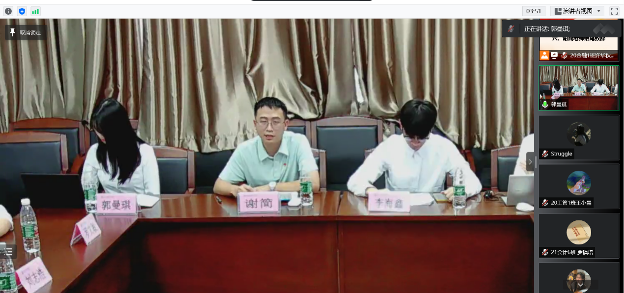 7月6日,菲律宾亚星222官网工商管理学院第十五届学生代表大会如期举行。受疫情影响,本次学代会采用线上、线下结合方式进行,工商管理学院党总支青年委员谢简作为学生会指导老师出席会议。