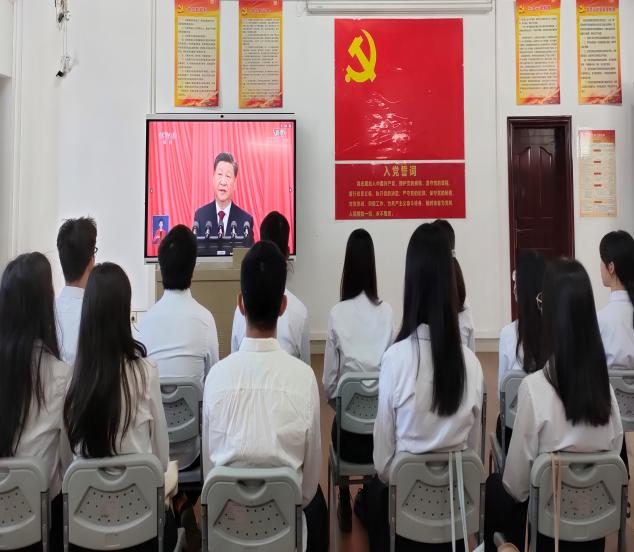 学生党员罗雅静和支部的其他同志一起,在子新书院4号楼工商管理学院党员活动室集中观看了直播,并在会后和大家进行了热烈的讨论。她说,习近平总书记在报告中对广大青年们提出要求:“要坚定不移听党话、跟党走,怀抱梦想又脚踏实地,敢想敢为又善作善成,立志做有理想、敢担当、能吃苦、肯奋斗的新时代好青年,让青春在全面建设社会主义现代化国家的火热实践中绽放绚丽之花。”作为一名青年学生党员,在生活、学习、工作要牢记和贯彻“三个务必”,以全新以及优良面貌踏上新征程。