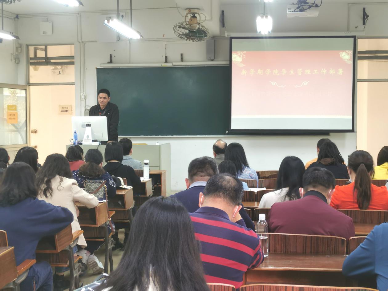 随后,学院副院长倪春丽和学院党总支副书记谢宏祥分别作了新学期教学工作和学生管理工作部署。