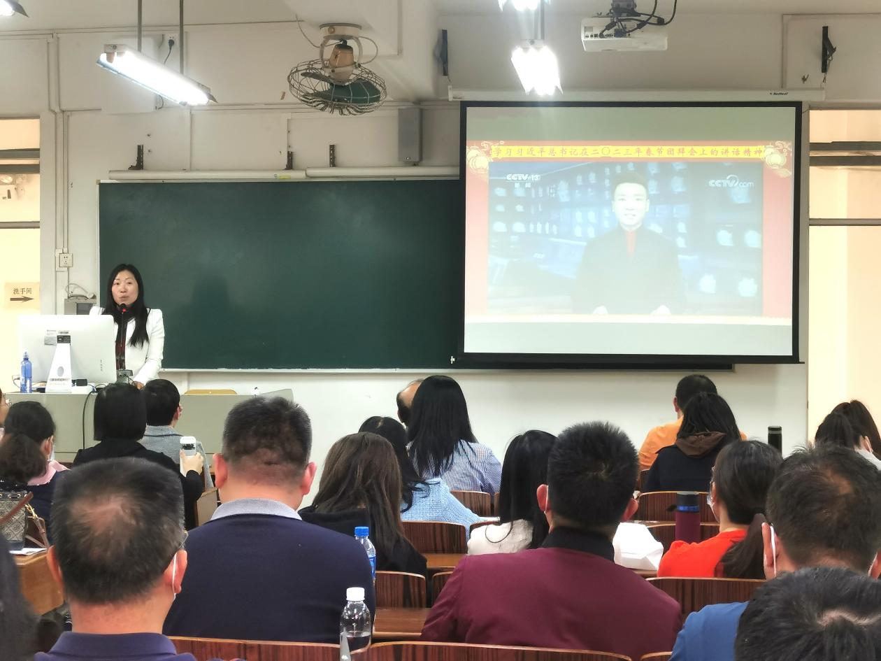 周清莲书记带领教职工学习习近平总书记2023年春节团拜会上的讲话精神