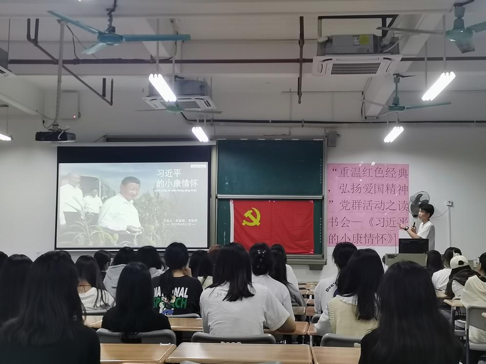 本次读书会活动围绕《习近平的小康情怀》这本书展开,由学生党员陈嘉慧和袁敬辉两位同志主讲,采用PPT演讲、观看视频、提问和上台发表感想等多种形式进行。《习近平的小康情怀》记录了党的十八大以来习近平总书记掌舵领航、举旗定向,带领全党全国各族人民全面建成小康社会的伟大历史进程。读书会现场,同学们认真思考,积极主动回答,分享自己的所思、所感、所想。