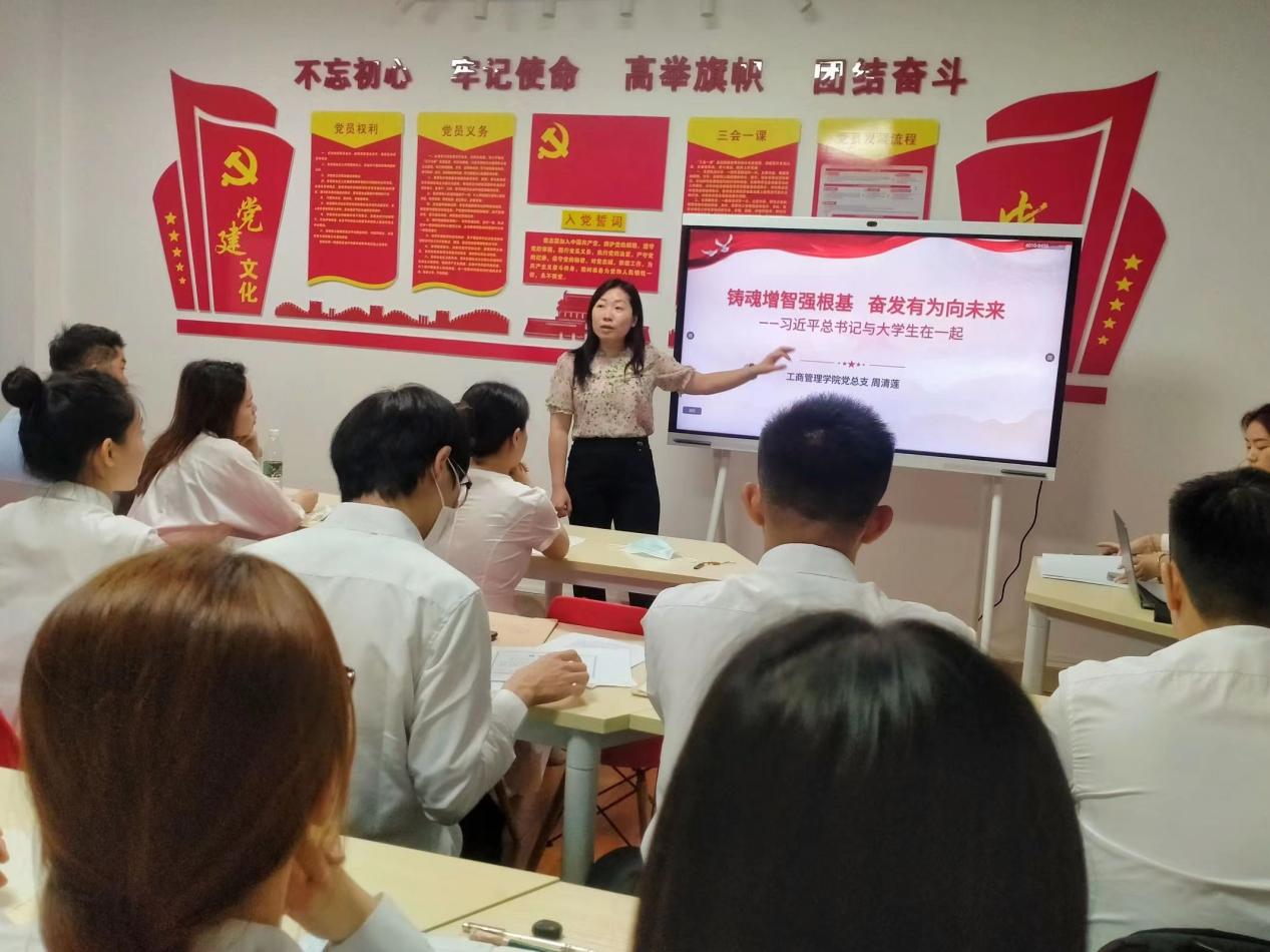 为深入学习贯彻习近平新时代中国特色社会主义思想主题教育,坚定理想信念,加强党性修养,6月15日,工商管理学院党总支书记周清莲为学院学生第二党支部全体党员讲授专题党课。