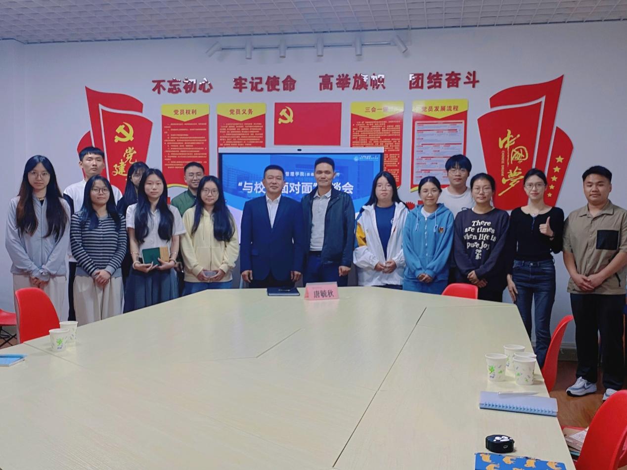 会上,学生代表提出了“专业技能学习”、“课程设置安排”、“大学生就业选择”和“退役士兵政策待遇”等广大学生关心的问题。唐毓秋认真聆听和记录了学生的发言,并分别从自身求学工作经历、专业实践经验、大学生成长发展历程等角度与学生进行了经验分享,并结合学校发展现状、当前社会大环境以及工商管理大类专业学生的群体特征等方面,针对同学们提出的问题进行了一一回应。