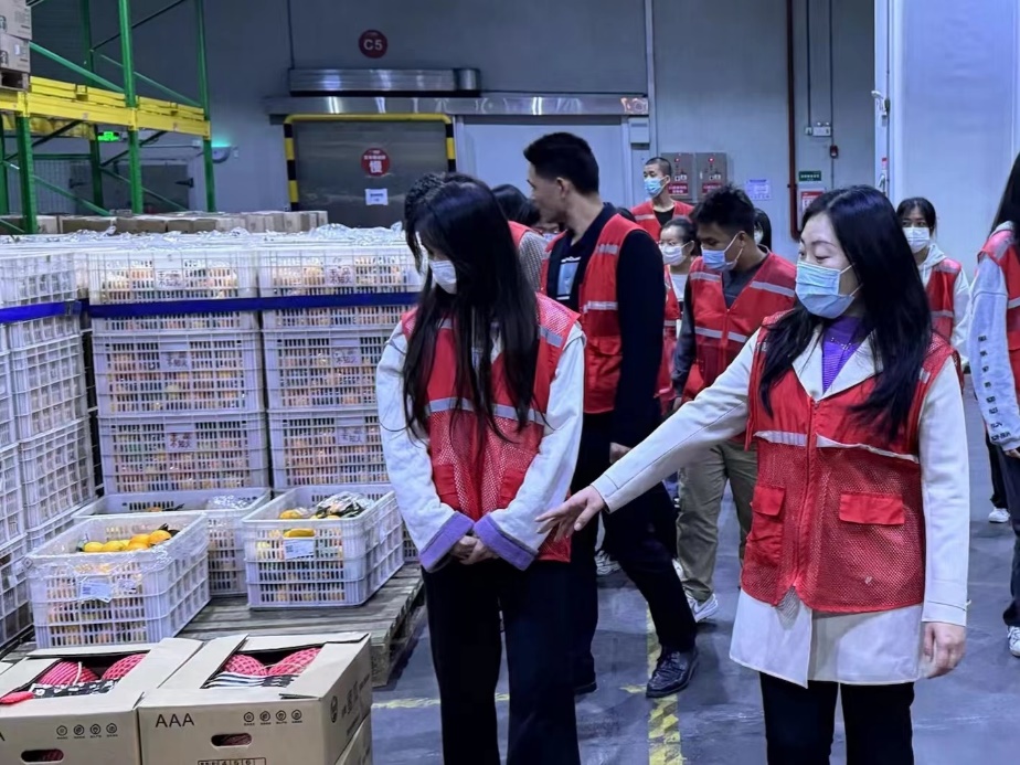 配送中心工作人员首先向同学们介绍了公司概况、企业发展形势及发展规划等。百果园在业内率先推出“不好吃三无退货”的服务承诺,让同学们体验到一个“信”字,信任的商业运作模式和企业文化。接着通过参观冷链配送仓库,让同学们进一步了解物流冷链的配送过程。