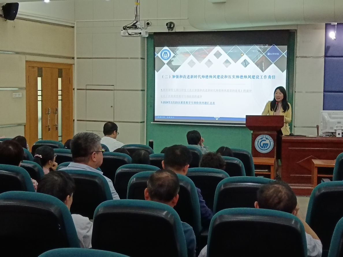3月26日下午,工商管理学院党总支组织学院全体教职工在天河校区西区报告厅开展政治理论学习。学院党总支书记周清莲主持了会议。