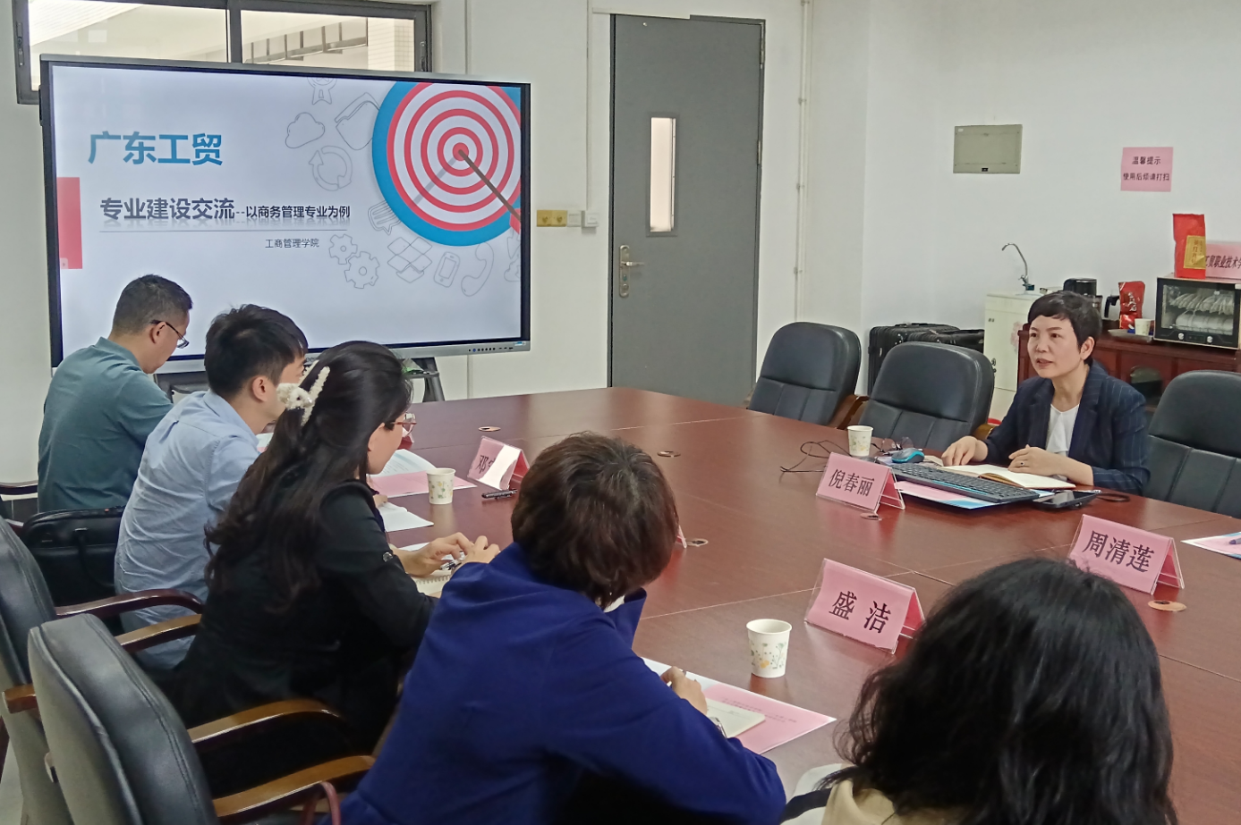 邹德军首先代表工商管理学院对盛洁院长一行六人的来访表示热烈欢迎和感谢,并介绍了学校的发展历程、学院概况以及相关专业教学资源建设经验,同时表示广东理工学院在人才培养基地、电子商务人才孵化基地、数智会计产业学院等领域取得了瞩目成绩,希望通过此次交流,两院校在高本衔接、产教融合、产业学院建设等方面开展合作。倪春丽以商务管理专业为例,在课程建设、人才培养、教师教学能力比赛和跨专业实训室建设等方面介绍了具体做法。双方就师资培养、教学过程、课程体系结构等方面交流了教学管理的经验与具体做法。盛洁表示,希望相互学习与借鉴双方在跨专业群建设的先进经验,激发专业群建设团队内生动力,并根据区域产业转型升级和行业企业岗位需求,动态调整专业群结构,促进跨专业群建设发展更上一个新台阶。