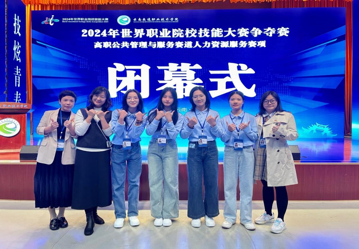 2024年10月25日至27日,备受瞩目的2024年世界职业院校技能大赛公共管理与服务赛道人力资源服务赛项争夺赛在云南交通职业技术学院(呈贡校区)成功举办。本次大赛由教育部联合国家多部委及事业组织共同主办,吸引了来自全国32个赛区省职业技能竞赛的佼佼者——58个职业院校精英团队齐聚一堂,展开了一场精彩纷呈的技能盛宴。经过紧张激烈的角逐,大赛最终评选出金奖5个、银奖10个和铜奖18个。我校工商管理学院参赛团队(参赛选手:23级人力资源管理3班蔡奕宁、22级人力资源管理3班谢锶敏、23级商务管理1班廖德仪、21级人力资源管理学徒制3班(毕业生)陈端仪;指导老师:丘俏玲,周奕宜)凭借出色的表现,喜获银奖。