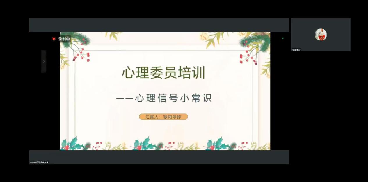 为全面提升学院心理健康教育工作的质量,进一步激发心理委员的责任感,明确其职责范围,提升专业技能与综合素养,以便更好地为班级同学提供全面的心理帮助,共同营造一个充满活力、积极向上的班级氛围。12月11日晚上,工商管理学院二级心理辅导站线上举行了月心理健康教育培训会。学院心理辅导站站长欧阳翠婷以及2023级、2024级全体心理委员和全体宿舍长参与了培训会议。