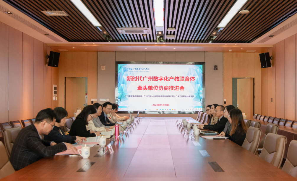 11月29日下午,工商管理学院在白云校区图书信息楼628会议室举行新时代广州数字化产教联合体牵头单位协商推进会。联合体牵头企业广州红海人力资源集团股份有限公司总监梁可玲、项目负责人吴晓华、陈静雯,联合体依托园区广州莱迪生命健康城莱蒂智汇谷总经理蒋志刚、经理罗梓莹参会。学校副校长赵红、对外交流合作部部长伍炜勤、工商管理学院党总支书记周清莲、院长倪春丽、副院长倪利、对外交流合作部副部长陈丽及相关专业带头人出席了此次会议。会议由倪春丽主持。