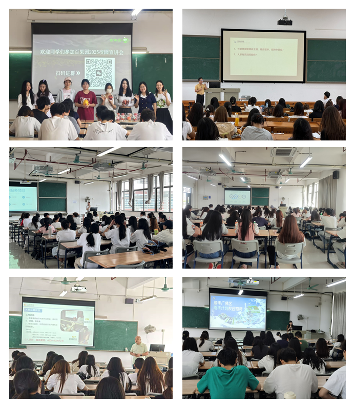 宣讲会在明德楼举行,由各专业协助入校企业同时开展。深圳百果园实业(集团)股份有限公司、广州大匠电子商务有限公司、广州云管理财税咨询有限公司、广州云海知识产权有限公司、广东云康链仓供应链管理有限公司、广州顺丰速运有限公司等来自共同体、联合体的合作企业提供了储备干部、新媒体主播、招聘专员猎头助理、财务助理等一批优质岗位,吸引了学院近500名学生前来听讲。企业宣讲负责人从公司发展历程、内部管理机制、需求岗位、人才培养渠道、公司发展优势等方面介绍了企业情况,同时还与现场同学进行了互动,针对同学们提出的各种关切问题给予详细的解答。现场气氛热烈。