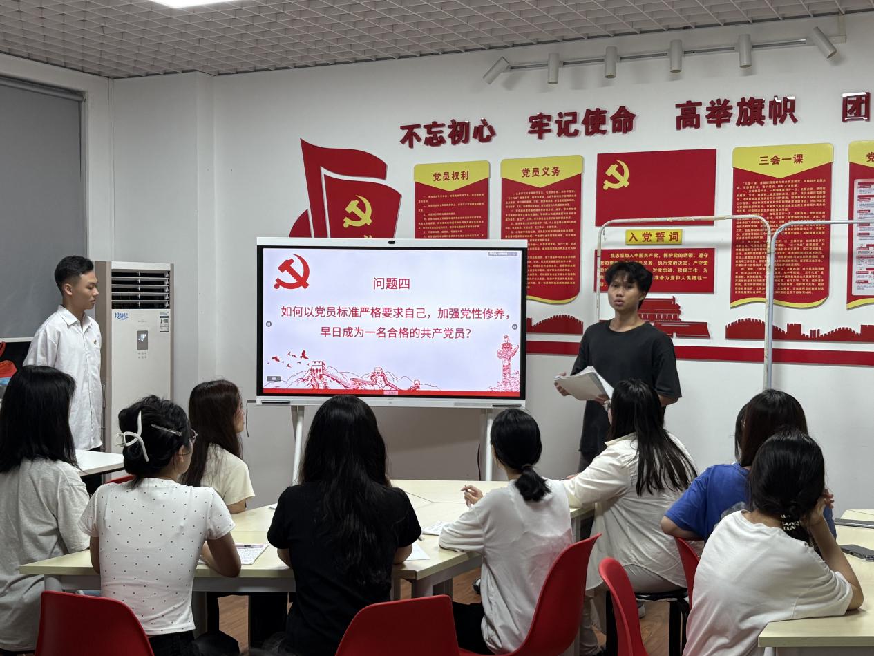 2025年5月29日,2025年第一期党员发展对象培训班学习小组讨论活动在九栋102党员活动室开展。本次活动由学生党员李文杰、卢彩怡主持。22名发展对象分成四个小组围绕四大议题展开讨论,聚焦议题深入研讨,气氛热烈。