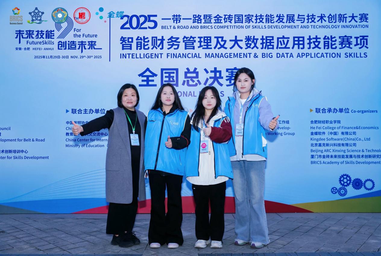 2025年11月30日,一带一路暨金砖国家技能发展与技术创新大赛——智能财务管理及大数据应用技能赛项全国总决赛圆满落幕。工商管理学院大数据与会计专业学子黄嘉慧、刘冰怡、李雯妍组成的团队凭借扎实的专业功底和出色的实战能力,从全国97支参赛队伍中脱颖而出,荣获高校组二等奖。该团队由龙志伟、杨慧(教)两位老师悉心指导。