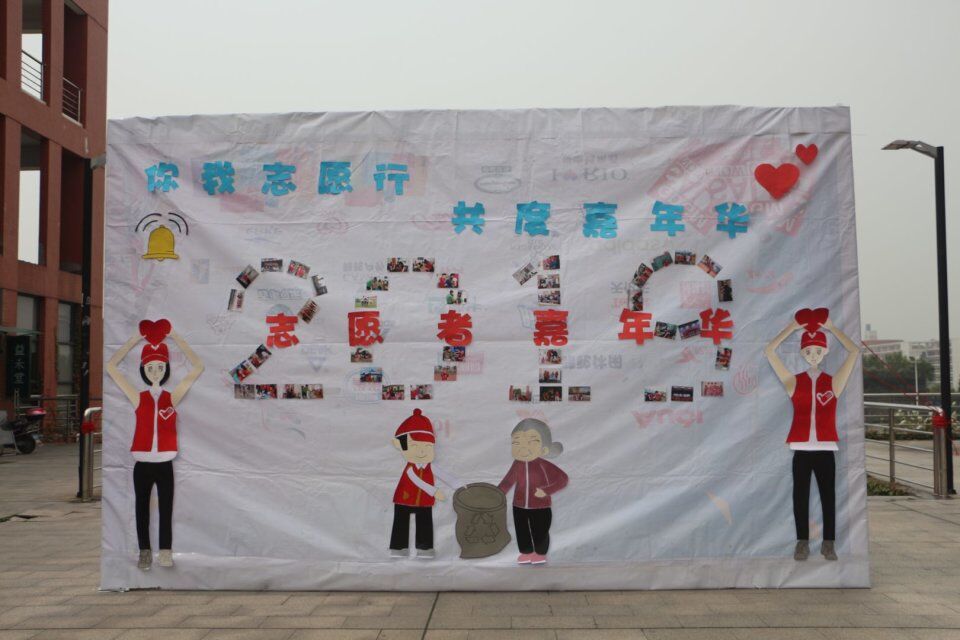 活动开始前,现场经过工作人员的一番精心布置,显得额外温馨且有意义,幕布上志愿活动的照片与图案充分展现了志愿者们奉献、友爱、互助、进步的青年志愿者精神。