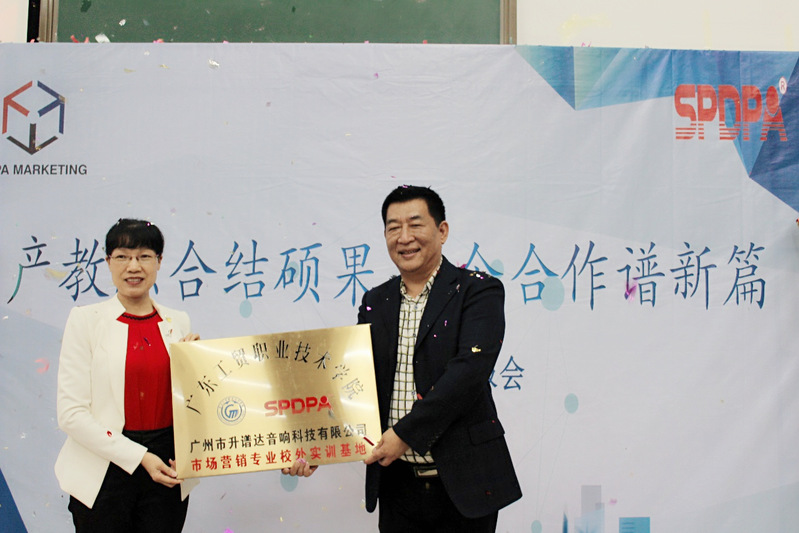 2019年4月2日,在这个春暖花开的日子,菲律宾亚星222官网经济贸易学院与广州市升谱达音响科技有限公司在白云校区隆重地召开了“校企合作阶段成果汇报会”,双方就校企合作一年多以来的工作和成绩,向大家做了详细的汇报。借此良机,还举办了菲律宾亚星222官网经济贸易学院校外实践基地授牌仪式和校外“双创”导师聘任仪式,进一步完善了我院校外实践基地建设,并加强了我们双创教育教学团队的师资力量。此次活动由品派营销协会承办。以下是校企合作阶段成果汇报会和授聘仪式的全过程: