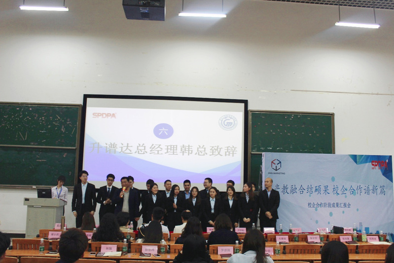 紧接着,广州市升谱达音响科技有限公司总经理致辞,他携升谱达所有此行代表,对学院表示了衷心地感谢,同时借此机会,跟同学们分享了销售人才应该具备的核心素质,以及企业是怎样培养人才的。