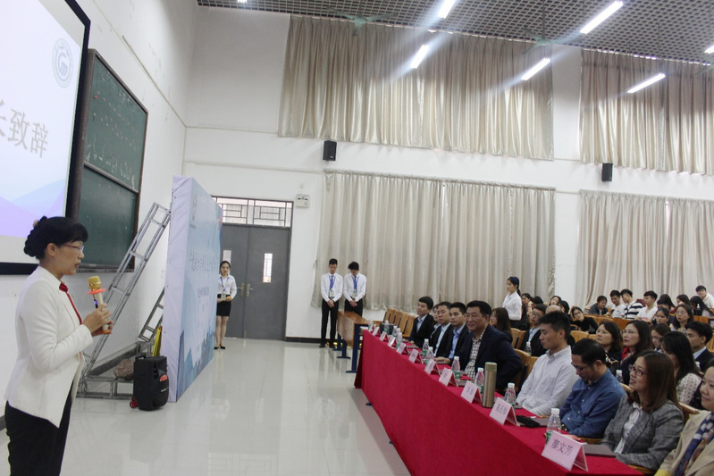 接下来是市场营销专业带头人彭娟教授致辞。彭娟教授就双方校企合作期间的整体思路、总体设计以及当中获得的成绩给大家做了汇报。