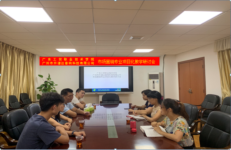 2019年9月10日,在第35个教师节当天,市场营销深度合作企业广州升谱达音响科技有限公司总经理韩继坤,带领企业骨干浙江办事处销售总监胡壮健,以及在今年7月份进入升谱达参与项目化教学的市场营销专业两名学生等一行4人,与我校经贸学院党总支副书记、院长邱秀芳教授,市场营销专业带头人彭娟教授以及骨干教师廖文芳等,在天河校区西区第一会议室,共同研讨项目化教学的思政教育,韩经理代表公司祝贺老师们节日快乐!
