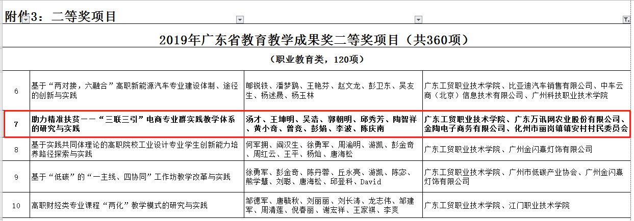 经济贸易学院《助力精准扶贫——“三联三引”电商专业群实践教学体系的研究与实践》项目获得省教学成果职业教育类二等奖!这是经贸学院首次荣臻此省级荣誉。