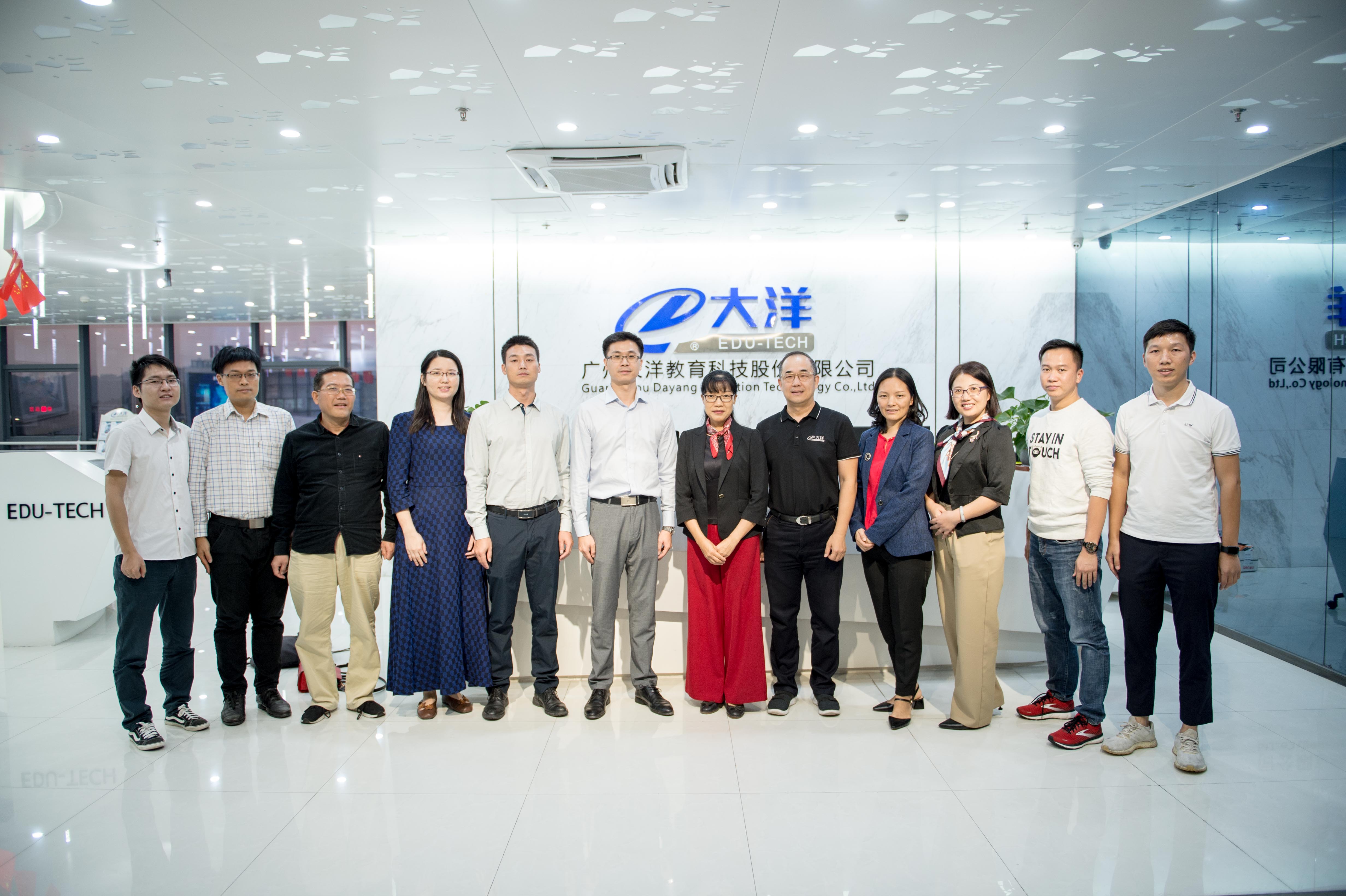 10月23日,经济贸易学院党总支书记李繁、院长邱秀芳、党总支副书记龚云、副院长蒋晶、办公室主任邓彩云、营销系主任严琳、国际贸易专业带头人李政敏、电子商务专业带头人方文超等一行10人,赴广州大洋教育科技股份有限公司参观考察。