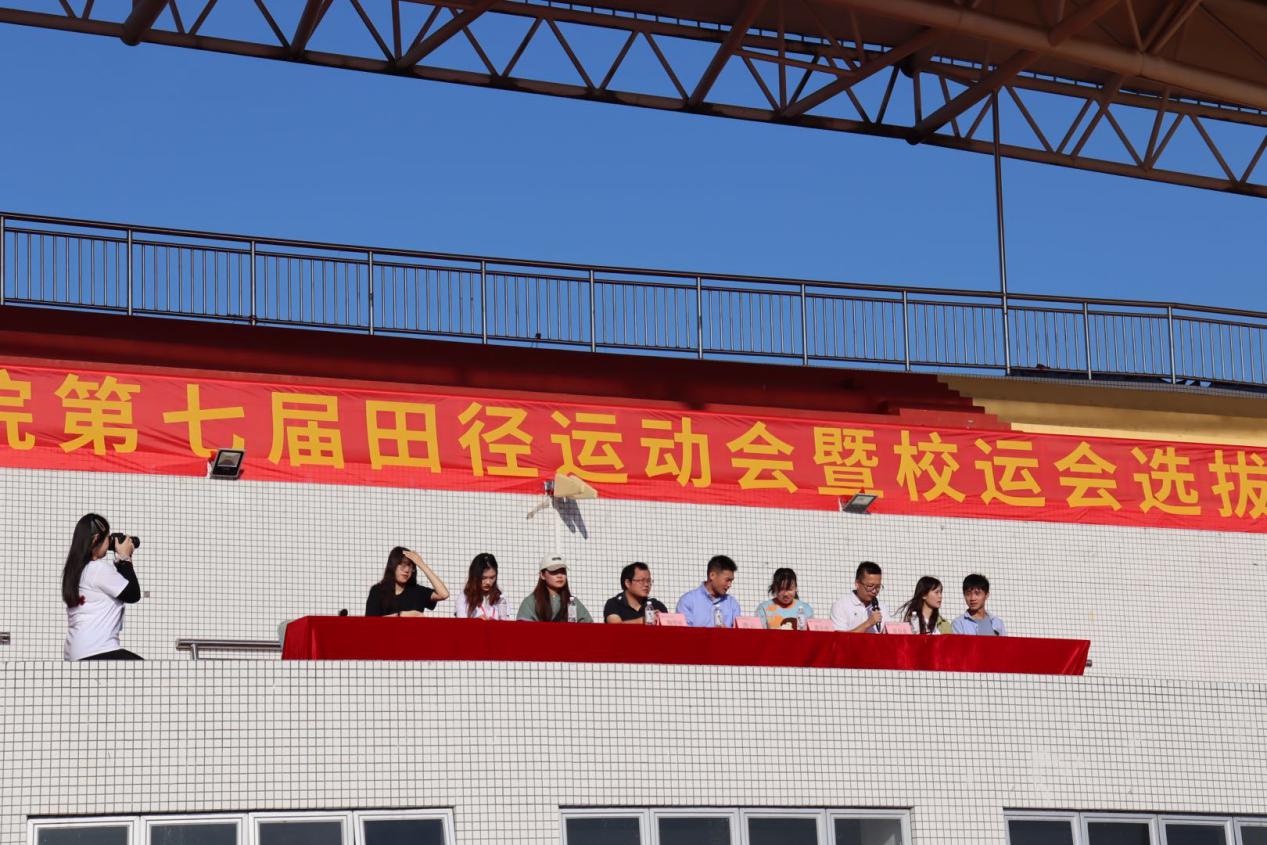 20201181000,经济贸易学院第七届田径运动会如期而至,本次运动会既展现当代大学生的风采,又增强学生的集体观念,这将促进学生个人素质的全面发展。经济贸易学院党总支副书记龚云、学工办主任黄小奇、以及辅导员陶智祥、章少重出席本次活动,开幕式由章少重老师主持。