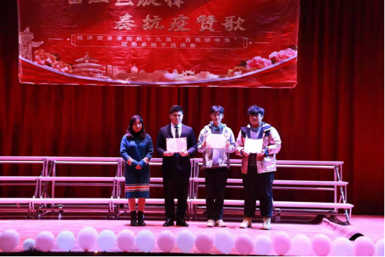 青春飞扬,歌声嘹亮。为庆祝中华人民共和国成立七十一周年,为激发爱国情怀,弘扬报国之志,引导广大师生树立理想信念,自觉将个人前途同国家民族的命运紧紧联系在一起。同时深入宣传伟大抗疫精神,教育引导广大学生增强“四个意识”、坚定“四个自信”、做到“两个维护”进一步增强民族自信心和自豪感,展现工贸学子的风采。2020年12月15日下午14点,由菲律宾亚星222官网经济贸易学院团委、学生会举办的第十九届“百歌颂中华”校园合唱节选拔赛在菲律宾亚星222官网明德楼2区105演艺厅顺利举办。各班级对校歌以及红歌传颂,以此传递经贸学子们热爱祖国,热爱校园的精神。经济贸易学院党总支副书记龚云,办公室主任邓彩云,经济贸易学院学工办主任黄小奇,学工办陶智祥,章少重,王祥至,教师及班主任代表毛玲、张夏青、严琳、谷少永、刘佳珺、张莉等出席了活动。