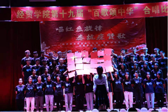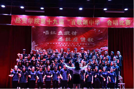 《保卫黄河》、《我的中国心》、《歌唱祖国》等经典曲目,更是让人们感受到了红色歌曲给大家带来的震撼。每个班级都有自己独特的特色,即使是同一首歌,由不同班级进行演唱,也是风格各异。经贸的学子们用歌声,向疫情期间默默奉献的每个人,表达自己崇高的敬意。