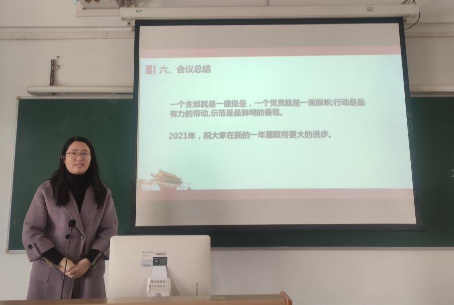会议最后,支部书记蒋晶以“一个支部就是一座堡垒,一个党员就是一面旗帜”鼓励支部全体党员再接再厉,2021年迈向更新的高峰。