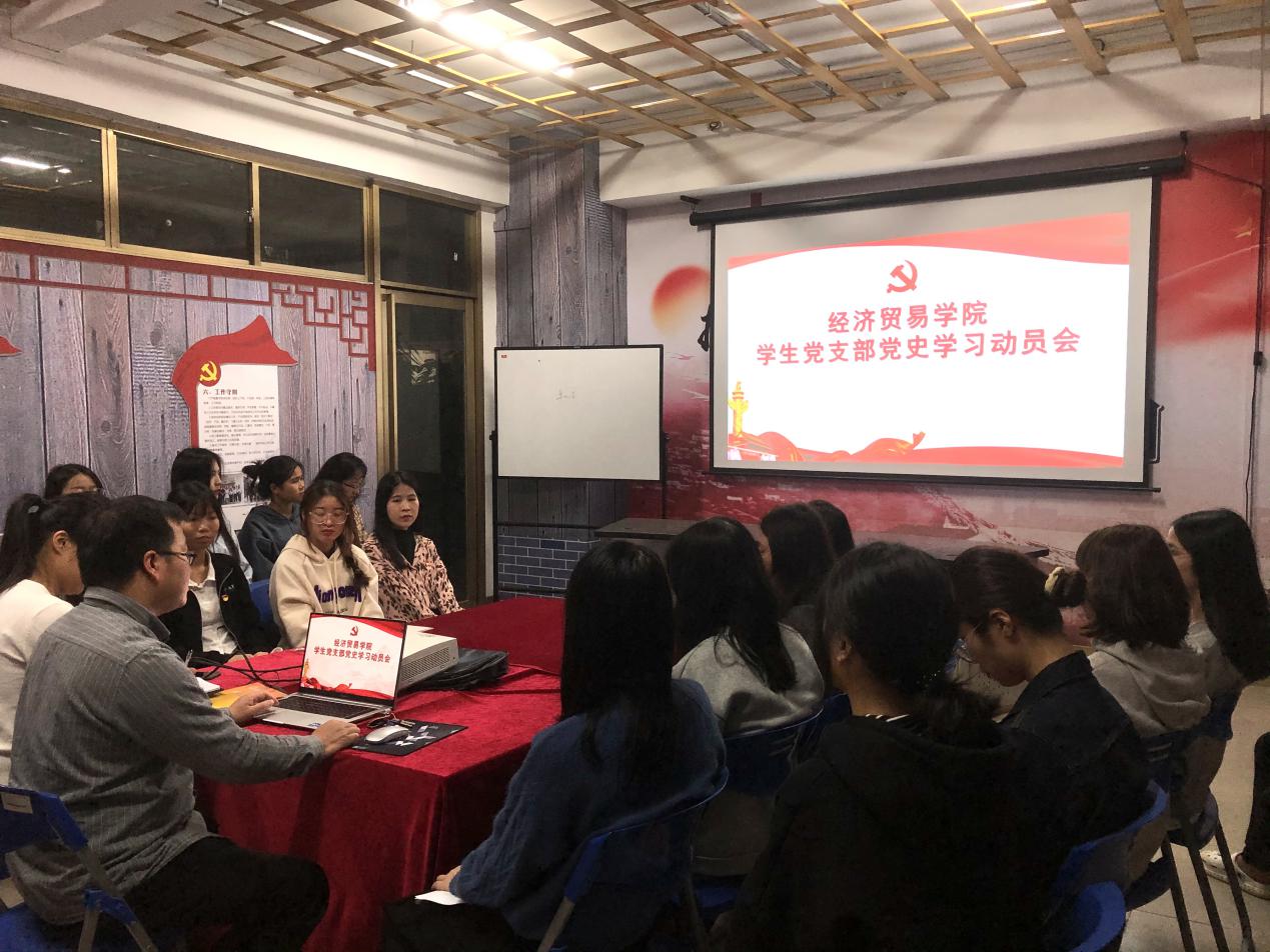 为了深入学习贯彻习近平总书记在党史学习教育动员大会上的重要讲话精神,认真落实广东省委、省委教育工委对全省(教育系统)党史学习教育的动员和全面部署,3月10日晚19:00,经济贸易学院学生党支部在宿舍楼1栋红色之旅讲习所开展了党章学习教育动员大会,动员支部党员切实做到学党史、悟思想、办实事、开新局,不忘初心,奋力拼搏,以优异成绩献礼建党100周年,并开展学习党史第一课党史故事100讲中的《南昌起义 八七定向》。此次会议由学生第三党支部书记陶智祥主持,学生第二党支部书记陈晓艳、在校生党员出席会议。