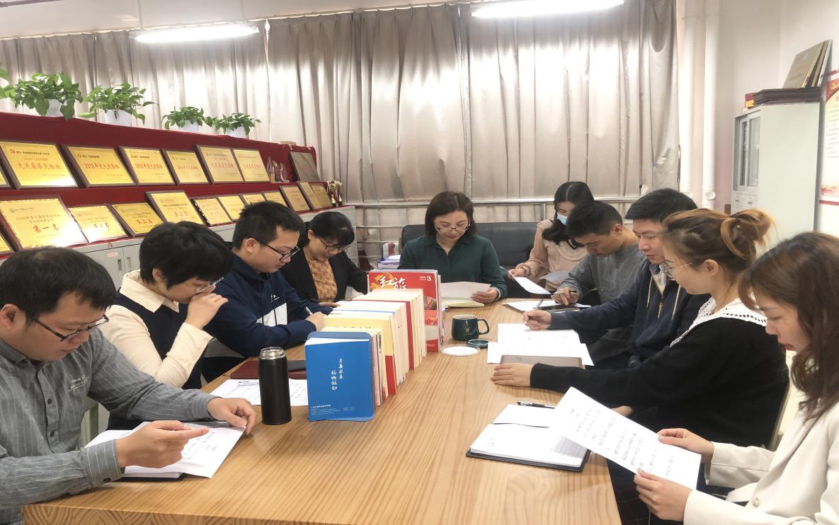 3月26日上午,经贸学院党总支在晨习会上开展了“学史知史、立德力行”党史学习教育系列活动之“诵读红色诗词 传承红色经典”活动,全体行政人员参加。活动由学院办公室主任邓彩云主持。