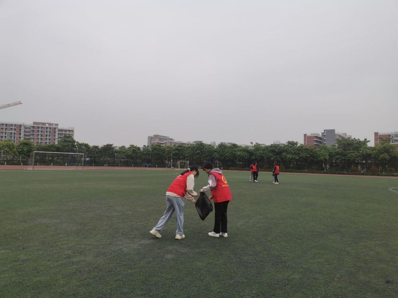 志愿者们的身影在这次的班级志愿活动中,遍布校园的每一个角落,校道、教学楼、楼道、广场等,田径场上容易被忽略的垃圾也被志愿者们仔细清理干净,让绿色田径场变得更加“绿”,让校园环境更加优美。