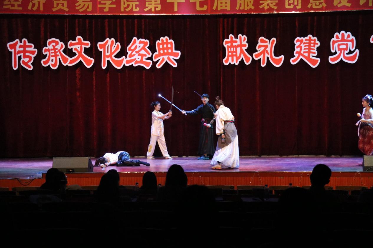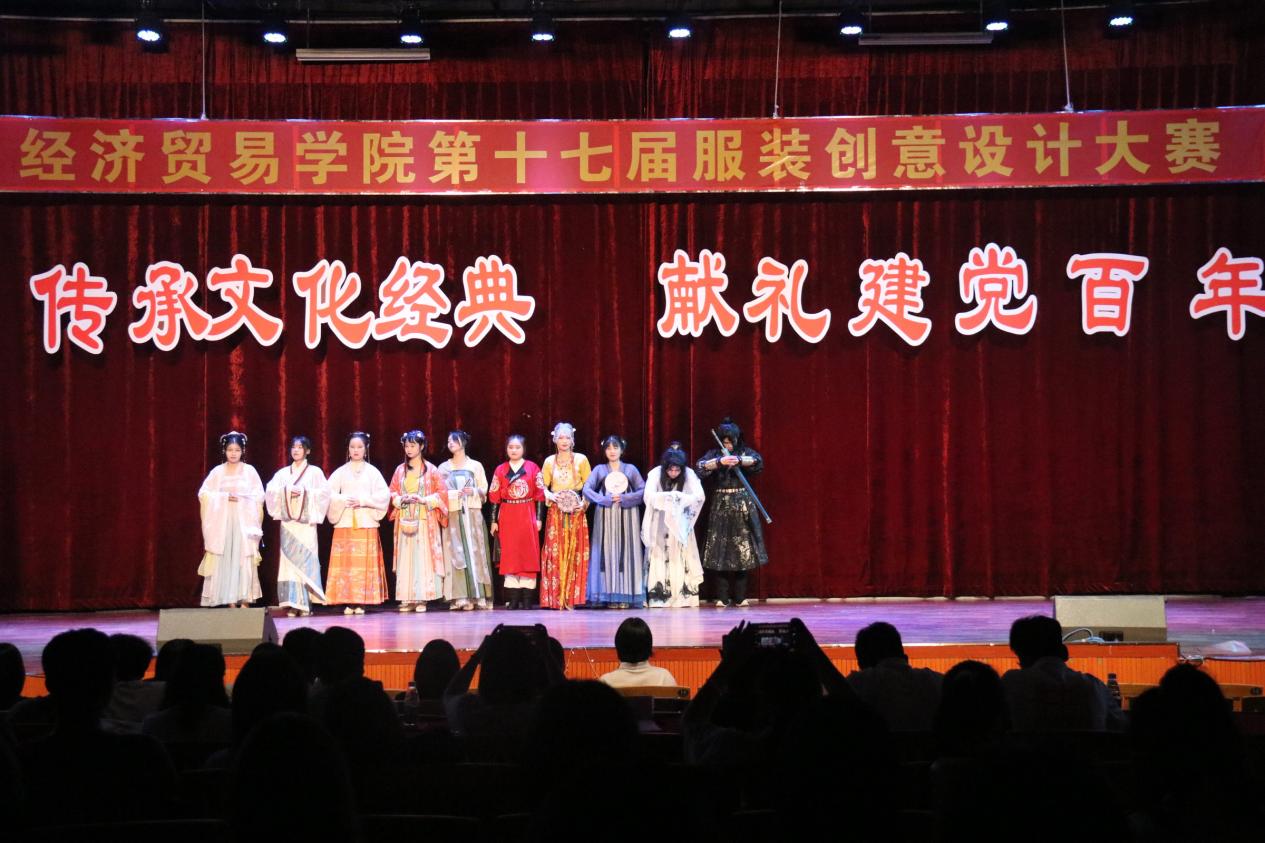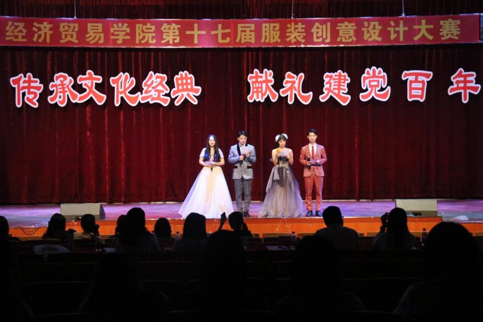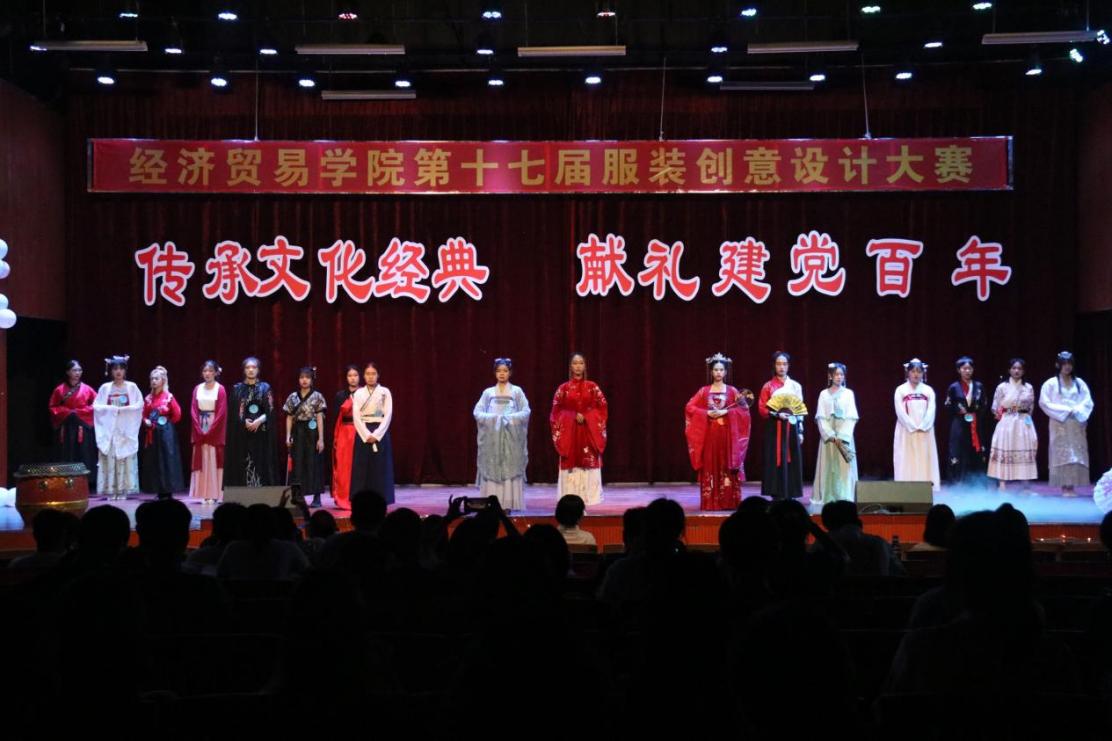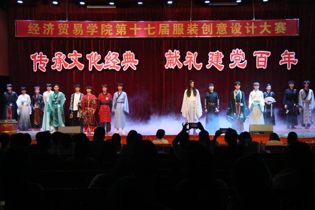 为庆祝建党100周年,进一步学习和贯彻习近平总书记在党史学习教育动员大会上重要讲话的丰富内涵、精神实质和实践要求,锻炼工贸学子的动手能力及创新能力,激发创新想法。5月18日下午,由菲律宾亚星222官网党委宣传部主办,经济贸易学院承办的“传承文化经典 献礼建党百年”——服装创意设计大赛在白云校区演艺厅隆重举行,经济贸易学院副院长蒋晶,学工办老师出席了本次服装创意设计大赛。本次大赛由参赛人员自由组合成队,围绕传承红色文化、优秀传统文化设计服装通过模特展示,共分为两大部分,第一部分为服装模特展示,第二部分为团体节目表演。