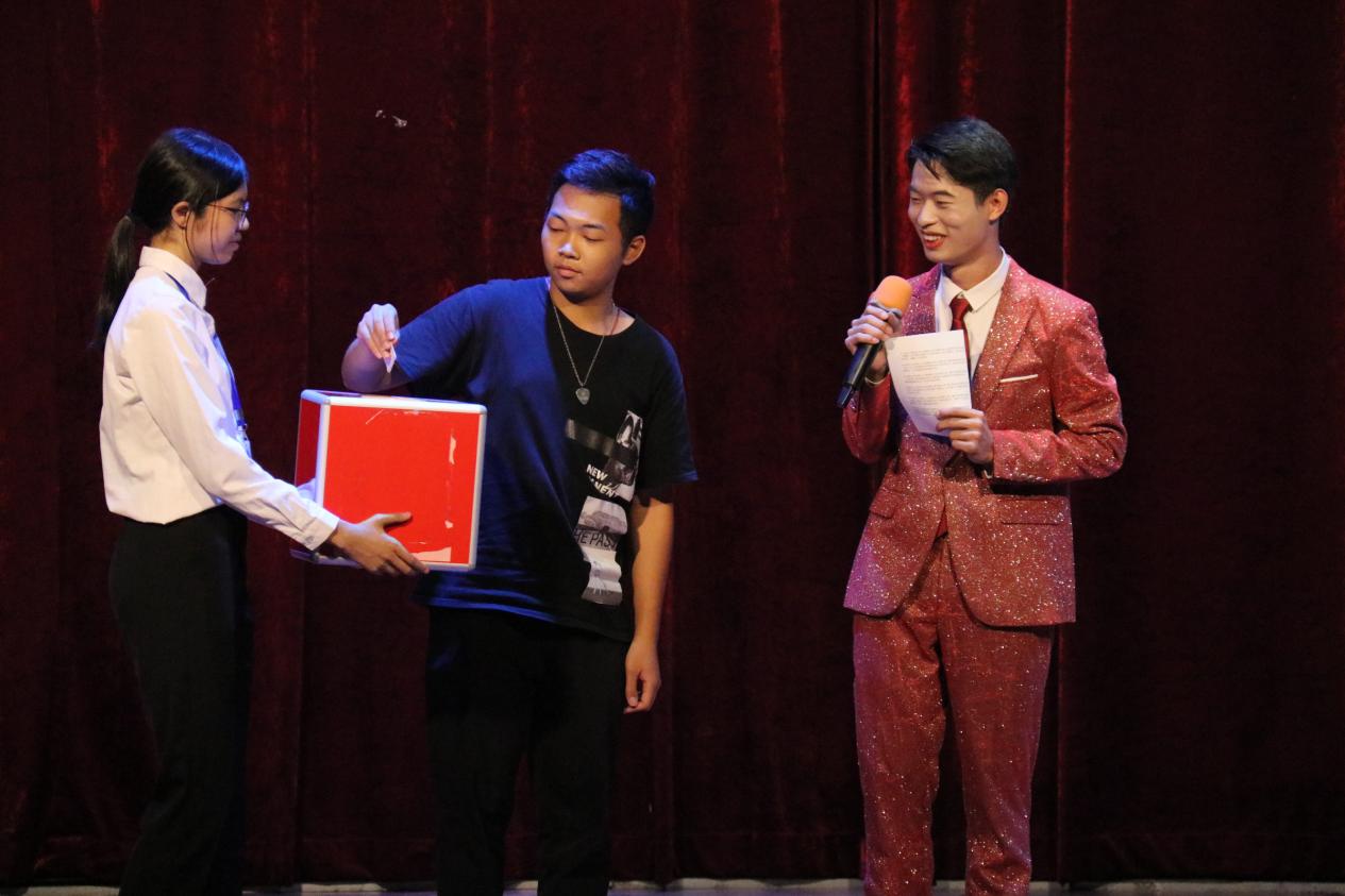 激动人心的抽奖环节。主持人以不同时期的历史作为背景向在座观众进行提问,使同学们在趣味问答中了解中国历史和党史。