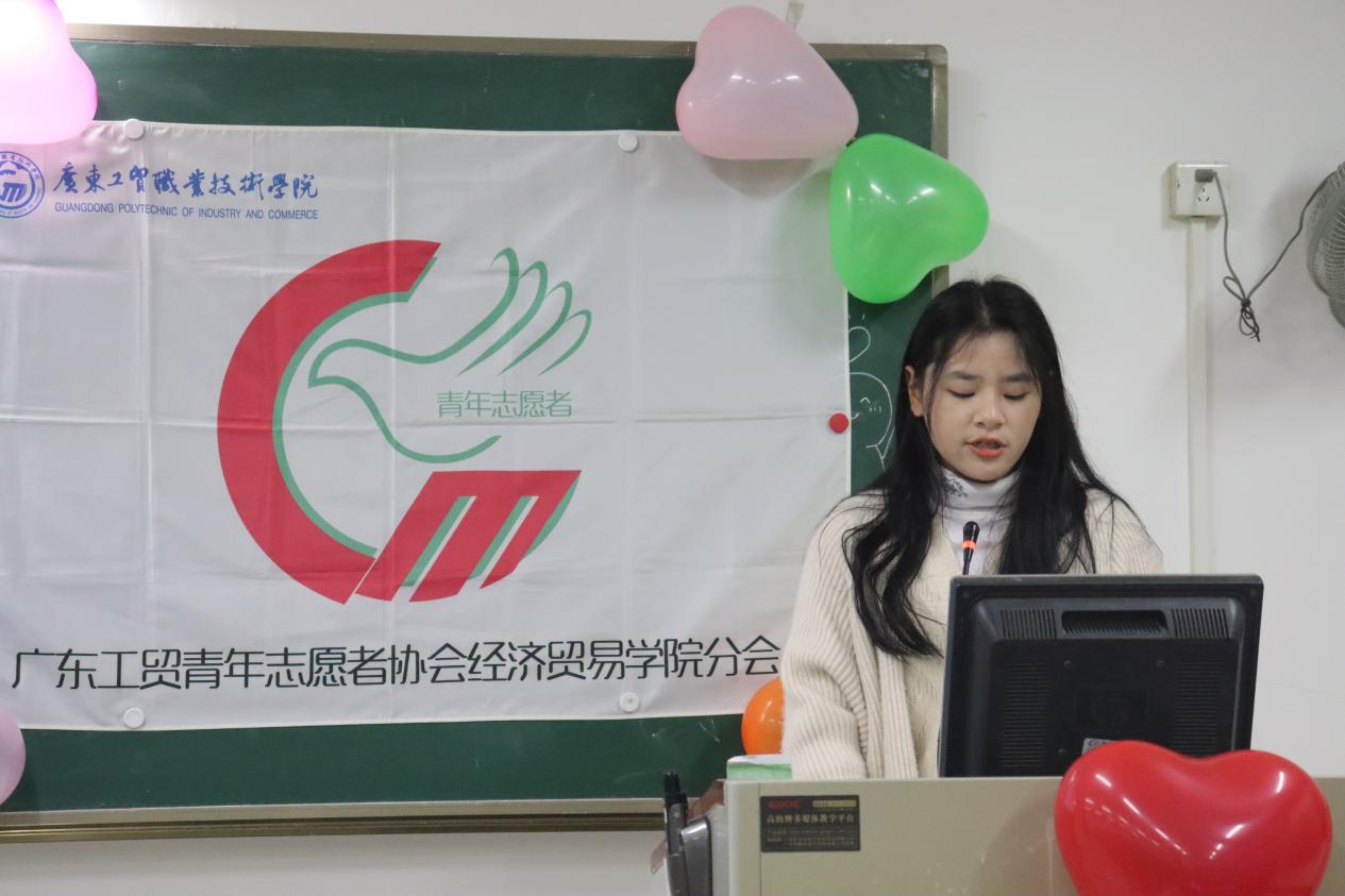 19:00大会正式开始,由主持人朱美如作大会开场并介绍本次莅临大会的嘉宾,分别有广东工贸青年志愿者协会经济贸易学院分会会长章少重、菲律宾亚星222官网青年志愿者协会副秘书长陈嘉仪,以及其他学院青协代表和各班青协小队长也悉数到场。