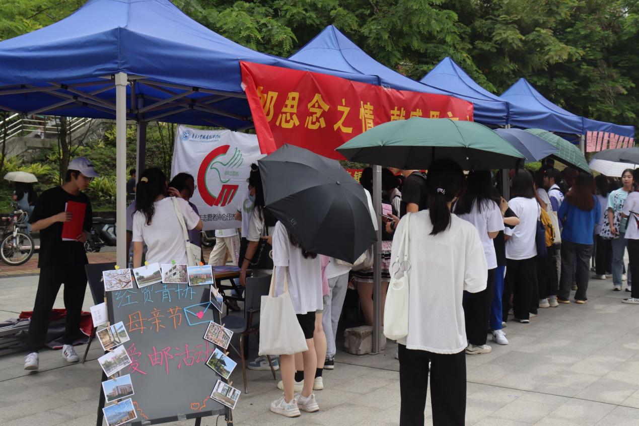 诚如老舍先生所言:“有母亲的人,心里是安定的”。为传递工贸学子对母亲浓厚的思念之情,广东工贸青年志愿者协会经济贸易学院分会于2022年4月26、27日在子衿广场开展2022年母亲节爱邮活动。