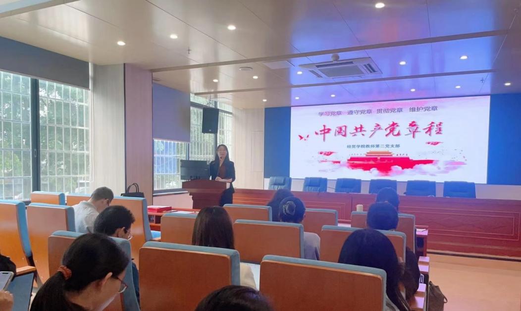 为进一步学习贯彻党的二十大精神,学深悟透党的二十大通过的《中国共产党章程(修正案)》,引导党员教师进一步强化党章意识,坚定理想信念,牢记初心使命,3月14日下午,经贸学院教师第二党支部全体党员在天河校区东区报告厅开展《中国共产党章程(修正案)》学习专题党课,由支部书记蒋晶主讲。