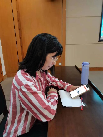 会议第二个环节是庆祝七一活动之重温“入党誓词”。在党支部书记廖晓虹的带领下,全体党员重温了入党誓词。