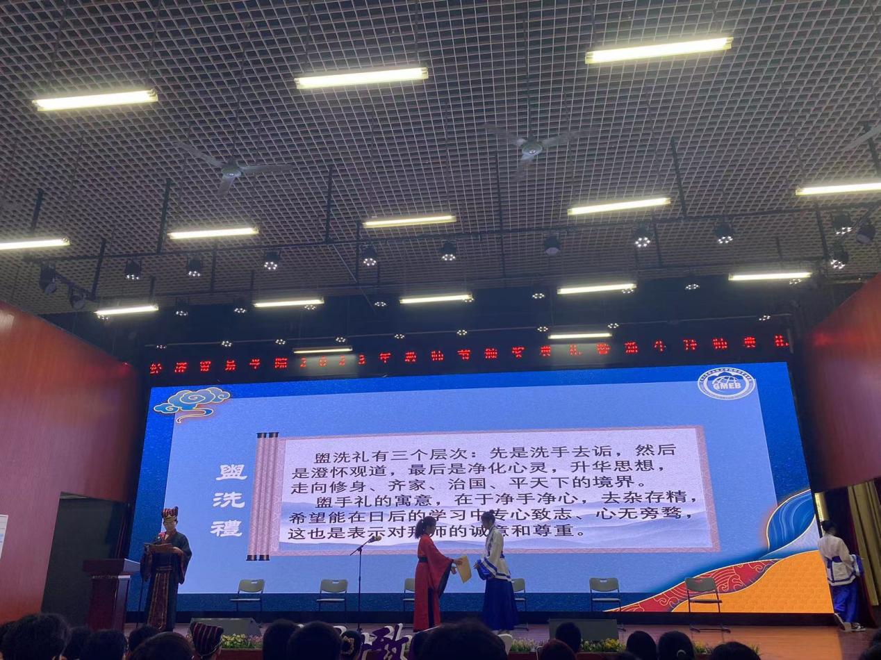 植根沃土,方能芬芳。中华优秀传统文化中的尊师重教,是中华民族的传统美德,也是践行立德树人根本任务的重要保证。为深入学习贯彻习近平新时代中国特色社会主义思想,深入挖掘中华优秀传统文化蕴含的思想观念、人文精神及道德规范,经济贸易学院于9月14日在白云校区105演艺厅举行了一场盛大的2023级新生拜师典礼。本次典礼采用线上、线下相结合的方式,通过实时直播让未能现场参加的师生一同感受典礼的氛围。经贸学院党总支书记李繁,院长邱秀芳及全体教师、2023级新生代表出席本次典礼。