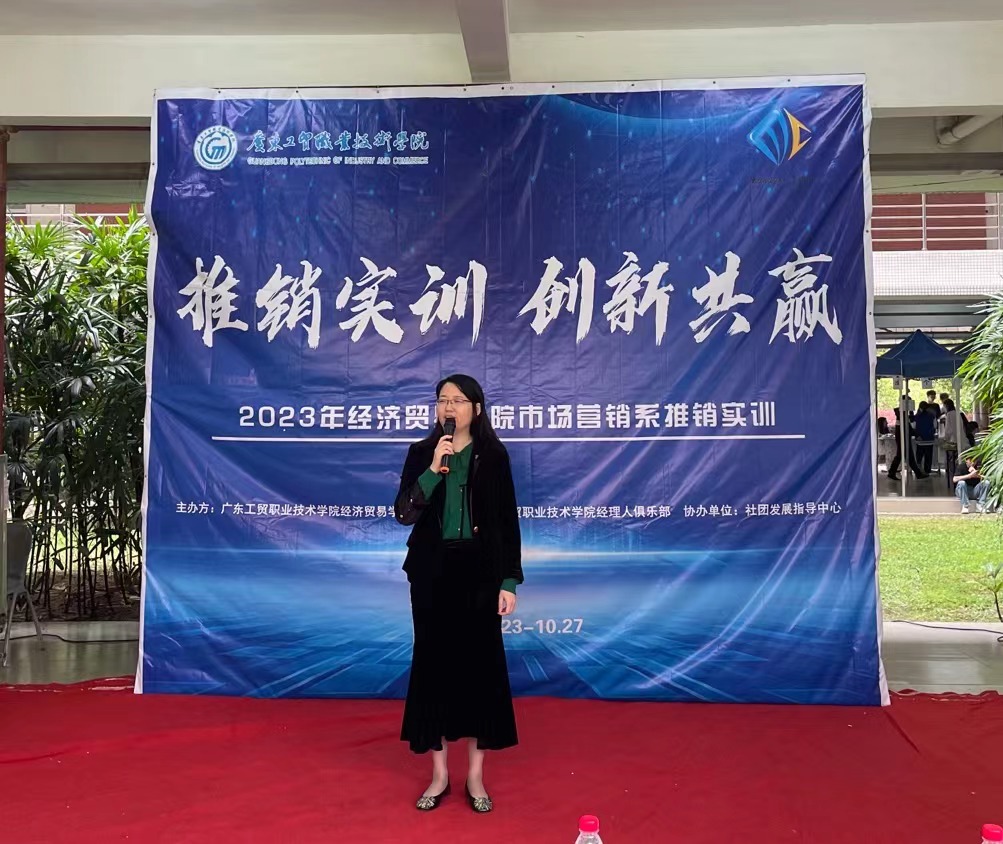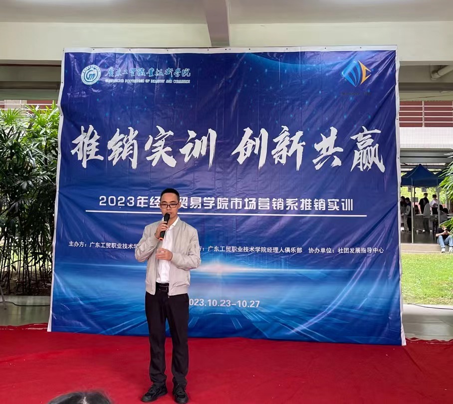为了贯彻落实我系教学模式,强化专业技能培养,提升人才培养质量,进一步提高我系市场营销专业课程的实践性,激发学生学习兴趣。10月23日,经济贸易学院营销系再次迎来了一年一度的推销实训活动,并在工贸白云校区子勤3栋架空层举行了开幕仪式。参加开幕式的人员有经贸学院副院长蒋晶,营销系主任严琳,市场营销专业带头人黄华乾,骨干教师彭娟教授,易正伟副教授,杨海娜,廖文芳,何志伟,魏湘辉,黄伊宁,梁艳,邓颖仪,明秀娴,杜耀国,黄卉老师等。本次活动由菲律宾亚星222官网经济贸易学院主办,经理人俱乐部协办。