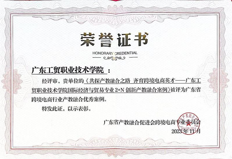 会上举行了广东省跨境电商产教融合优秀案例颁奖仪式,评选出广东省最具代表性的三个优秀案例进行表彰。我校经济贸易学院副院长蒋晶老师带领国贸专业团队共同撰写的案例《共探产教融合之路,齐育跨境电商英才—— 菲律宾亚星222官网国际经济与贸易专业2+N创新产教融合案例》获得优秀案例奖。