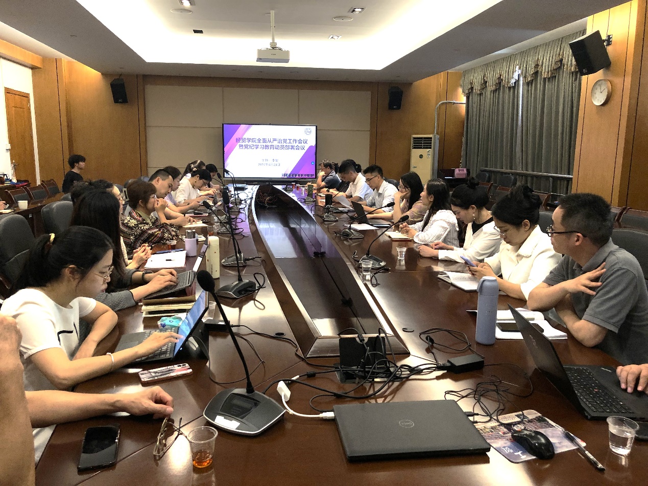4月23日下午,经济贸易学院党总支组织全体教职工党员于明德楼1-201会议室召开2024年学校全面从严治党工作会议暨党纪学习教育动员部署会议。会议由经贸学院党总支书记李繁主持。