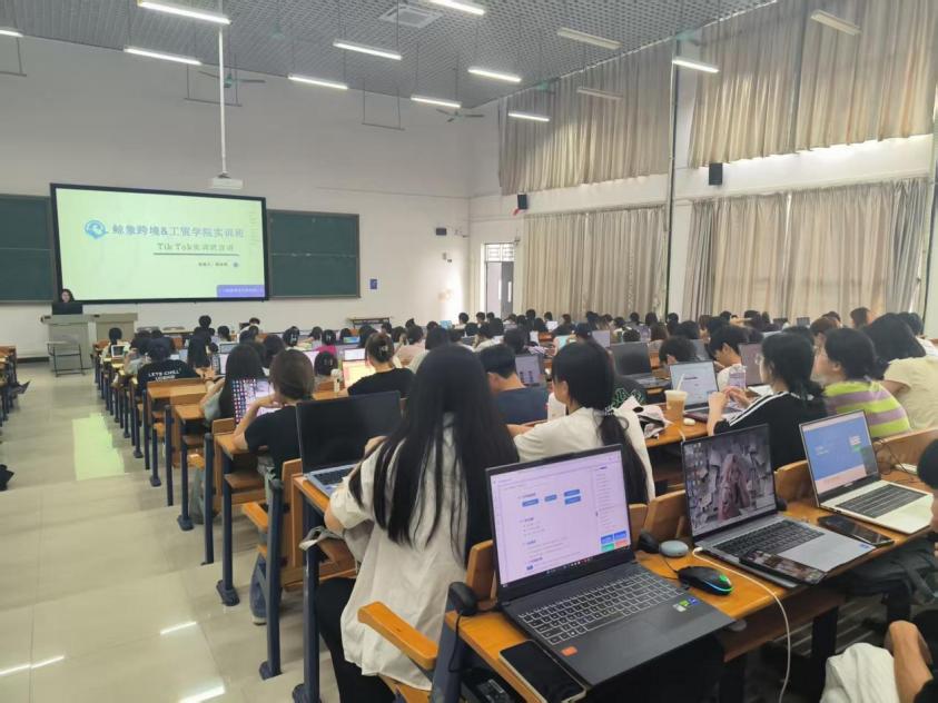 5月6日,企业导师带着“干货”进校:平台运营规则、营销策略拆解后,学生直接上手真实跨境店铺,完成从搭建、上架到推广的全流程操作。“AI客服自动回复、大数据精准投流……这些课本上的词,今天全‘活’了!”参与学生感叹。实战中,数字化工具的应用与行业真实生态,让学生的实操能力与认知同步“升级”。