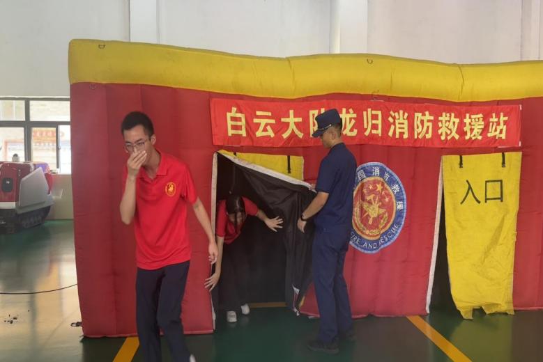 六辆特种消防车在救援站整齐列阵,每辆车都闪耀着专业的光芒。消防指战员为师生们详细讲解了这些“钢铁战士”的独特本领,学生们近距离触摸装备,惊叹“钢铁巨兽”背后的科技力量。在烟雾逃生体验舱中,支部党员弯腰捂鼻,在黑暗环境中突围。“方向感完全丧失,真正体会到消防员的英勇!”学生党员黄毅感慨道。在消防科普中心,支部成员系统学习了火灾预防、初期灭火和逃生自救等知识。随后,全员挑战消防员日常训练的15米逃生塔,攀爬强度项目让青年学子直呼“每一秒都是对体能与意志的双重考验”。