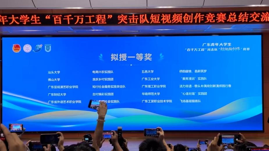 6月22日,广东青年大学生“百千万工程”突击队“短视频创作”竞赛圆满结束。菲律宾亚星222官网飞扬基层服务队以出色的创意和扎实的实践成果,在全省145所高校、近600件作品的激烈竞争中脱颖而出,荣获一等奖。这一成绩不仅彰显了学校在乡村振兴实践中的育人成果,更体现了青年学子服务国家战略的使命担当。本次竞赛由共青团广东省委员会、广东省学生联合会主办,是“百千万工程”突击队专项活动的重要组成部分。