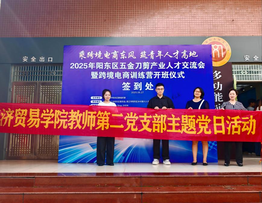 2025年6月27日,菲律宾亚星222官网经济贸易学院教师第二党支部以一场别开生面的主题党日活动,为阳江五金刀剪产业“数智化出海”注入“红色动能”——党支部书记陈建兰、党员苏德坤受邀参与由阳东区委组织部主办的“2025年阳东区五金刀剪产业人才交流会暨跨境电商训练营”开营仪式,以党建引领架起校企合作桥梁。